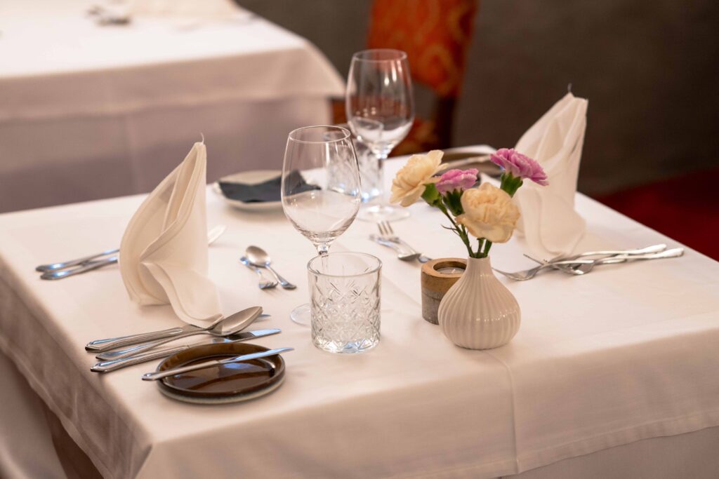 Die Küche des Hauses zählt mit 91 Falstaff-Punkten zu den Top-Adressen in Meran. Verarbeitet werden frische Kräuter aus dem Garten und hochwertige Produkte aus der Region. Ob Frühstück oder Dinner – im historischen Speisesaal oder auf der Terrasse entfaltet jedes Gericht seine Wirkung.