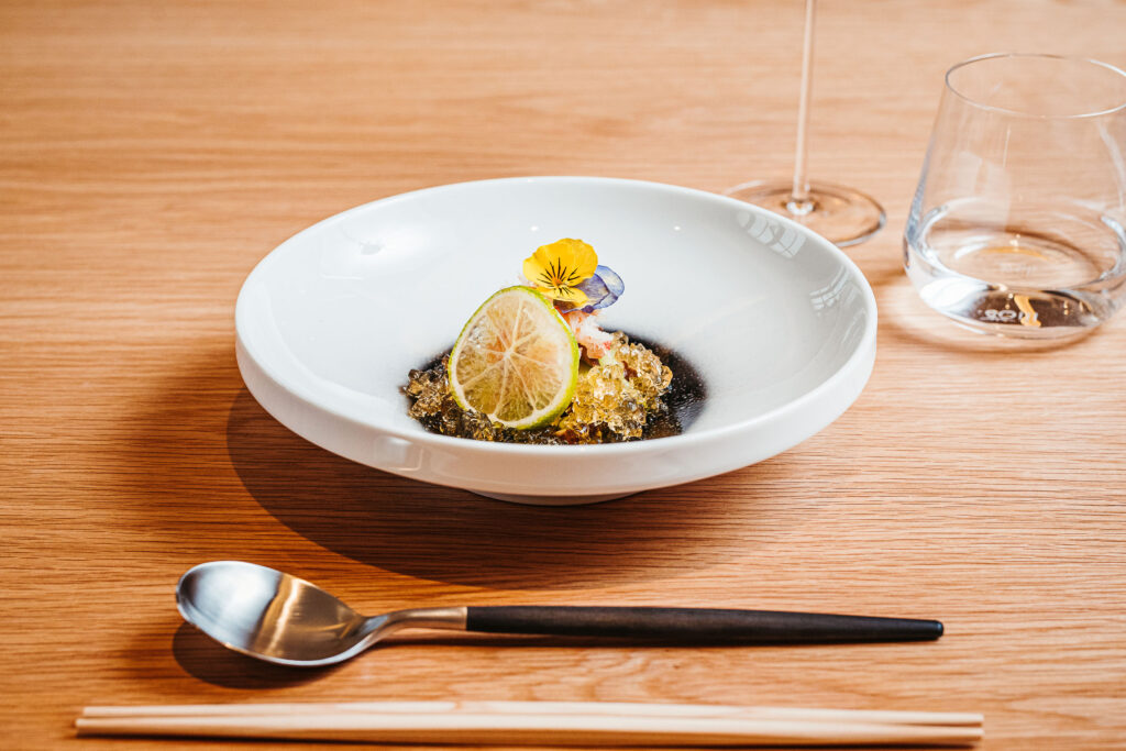 Im Restaurantbereich dominiert das Omakase-Prinzip. Gäste überlassen Auswahl und Dramaturgie des Menüs dem Küchenchef. Saisonale Spitzenprodukte, präzise Schnitttechnik und fein austarierte Aromen prägen die Abfolge der Gänge. Jeder Teller folgt einer klaren Ästhetik, jedes Detail ist bewusst gesetzt.